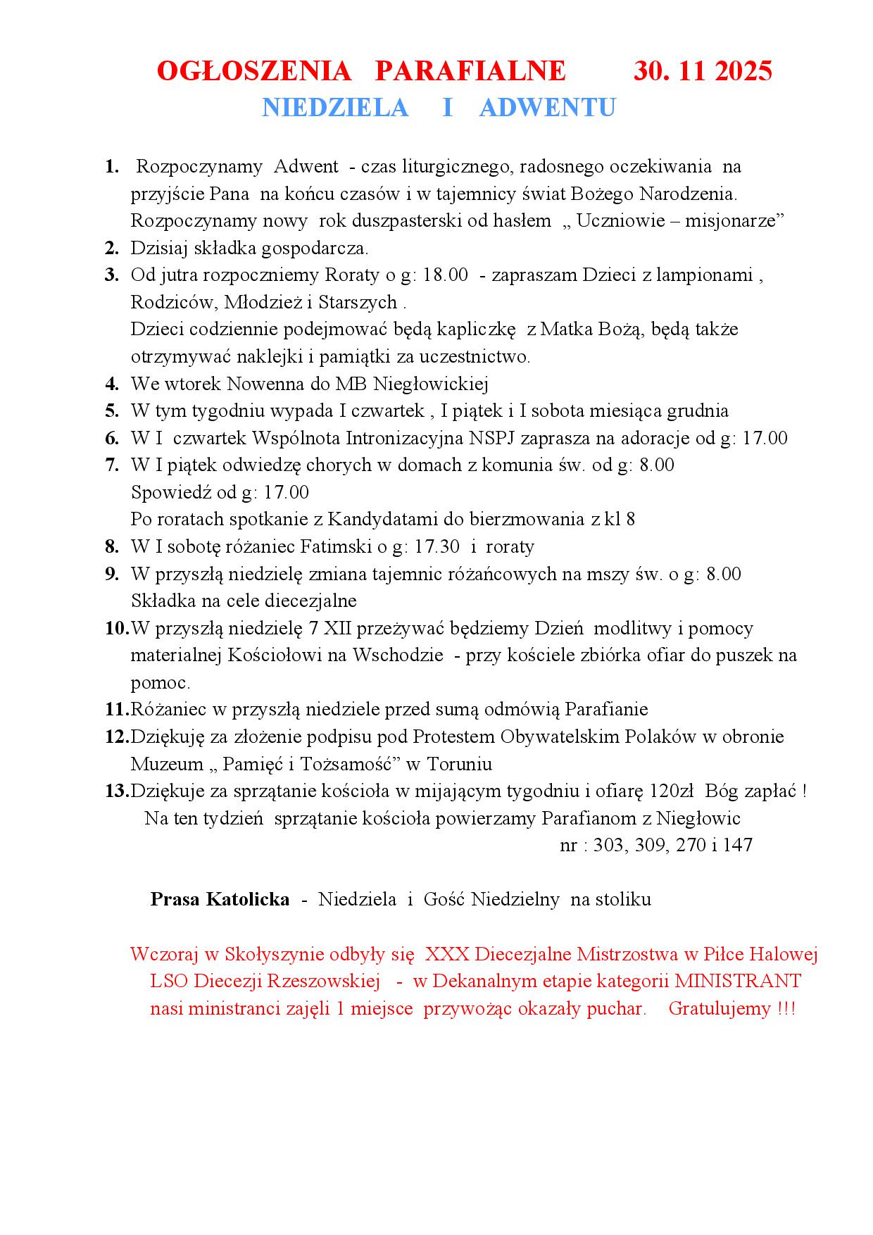 - Uroczystość Wszystkich Świętych 1 listopada 2025